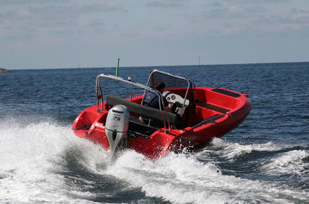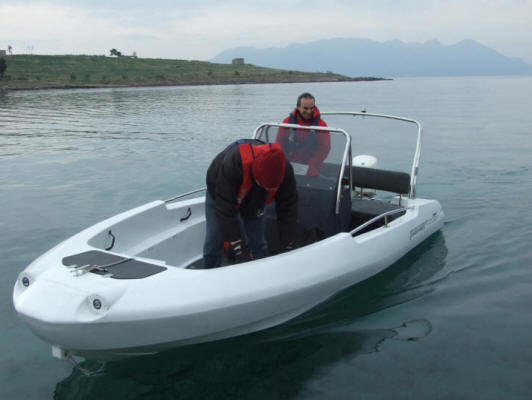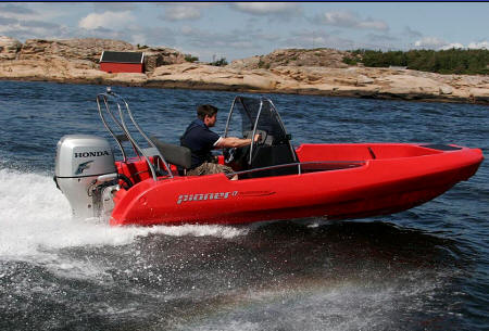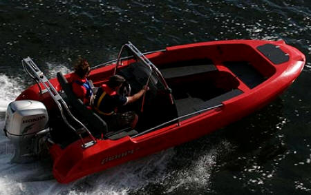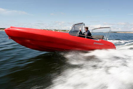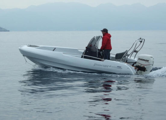 με πολύ βαθύ V με chine που δουλεύει όπως τα μοντέρνα φουσκωτά. Ενα φουσκωτό